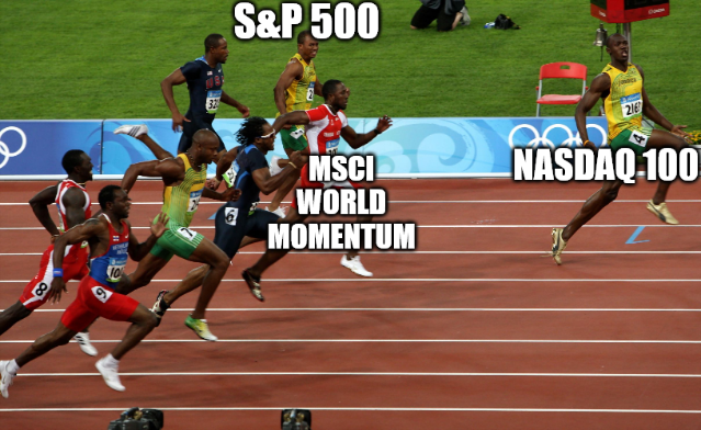 Drugim z indeksów faktorowych jest Momentum (pęd), czyli indeks firm, których ceny są w najmocniejszym trendzie wzrostowym. Jest to faktor techniczny, a nie fundamentalny, więc nie interesuje nas tutaj to, ile spółki zarabiają albo jakie mają zadłużenie, a jedynie to, że cena ich akcji dynamicznie i trwale rośnie. Momentum ma na celu pokonanie szerokiego indeksu poprzez wybór „najgorętszych” spółek w oczach inwestorów.