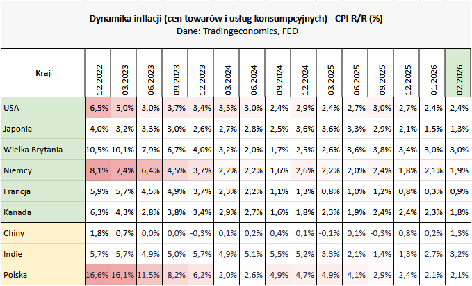 Według wstępnego odczytu inflacji za marzec 2026 w Polsce wzrost cen rok do roku wyniósł 3% wobec jeszcze 2,1% między lutym 2026 a lutym 2025. Jest to mimo wszystko dość niewielki skok inflacji, biorąc pod uwagę prawdziwy pik cen paliw na stacjach benzynowych, który jest teraz dodatkowo ograniczony maksymalnymi cenami paliw wprowadzonymi przez polski rząd. Na razie nie zapowiada się, by konflikt między Izraelem i USA a Iranem, miał przyczynić się do wzrostu inflacji tak dużego, jak pandemia COVID-19 kilka lat temu. Można jednak spodziewać się nieco wyższych odczytów inflacji w kolejnych kilku miesiącach nie tylko w Polsce, ale i w USA i innych krajach świata.