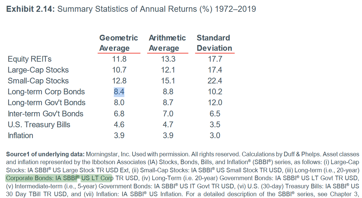 Skoro w portfelu WisdomTree EfficientCore są kontrakty futures na obligacje skarbowe, to czemu w analizie dowodzącej słuszności strategii lewarowanej firma użyła danych dot. obligacji korporacyjnych, a nie obligacji skarbowych? Nawet u źródła (czyli w materiale analitycznym dostawcy tego nieistniejącego już indeksu obligacji korporacyjnych) mamy potwierdzenie, że długoterminowa geometryczna stopa zwrotu dla tego indeksu obligacji skarbowych wyniosła 8,4% rocznie, a dla średnioterminowych obligacji skarbowych USA było to tylko 6,8% (a myślę, że to właśnie nimi można przybliżyć stopę zwrotu części obligacyjnej funduszu ETF WisdomTree Efficient Core US, bo kontrakty terminowe na obligacje o różnej zapadalności dadzą stopę zwrotu średnioterminowych obligacji USA).